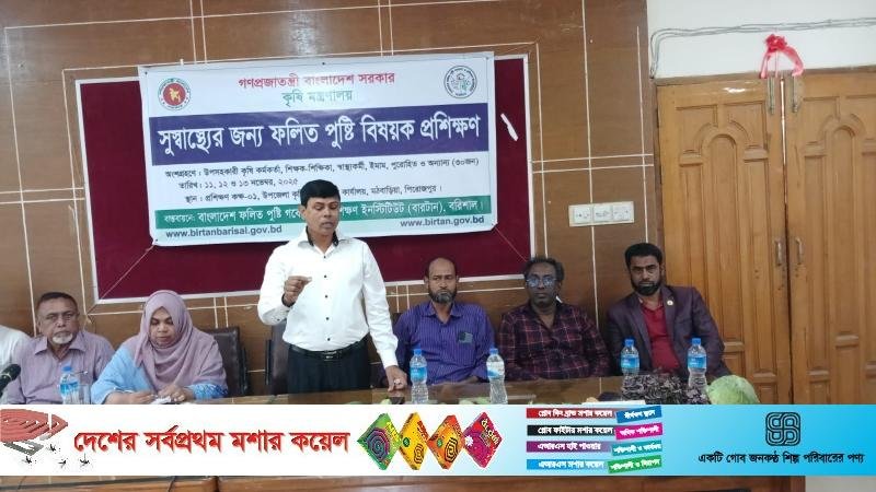 পিরোজপুরের মঠবাড়িয়ায় কৃষি মন্ত্রণালয় ও বাংলাদেশ ফলিত পুষ্টি গবেষণা প্রতিষ্ঠান বরিশালের আয়োজনে তিনদিন ব্যাপি ফলিত পুষ্টি বিষয়ক প্রশিক্ষণ অনুষ্ঠিত হয়েছে।